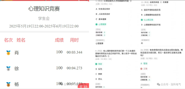 2025年5月25日,OK138太阳集团,为进一步普及心理健康知识,增强学生心理素质,营造积极向上的校园心理文化氛围,成功举办了“心海竞舟,智识破浪”心理健康专题知识竞赛活动,此次活动采取2022级线上的形式,2023级线下形式。活动旨在帮助同学们,培育乐观心理健康状态,树立良好的心理健康观念。此次活动心理健康知识竞赛旨在以赛促学、以学促行,在为同学们提供了一个学习和交流心理健康知识的平台,同时也在校园内营造了关注心理健康的良好氛围。通过这次活动,帮助同学们能够进一步认识到心理健康的重要性,以更加积极的态度面对学习和生活中的挑战,用乐观的心态化解困难,用坚韧的毅力克服挫折!